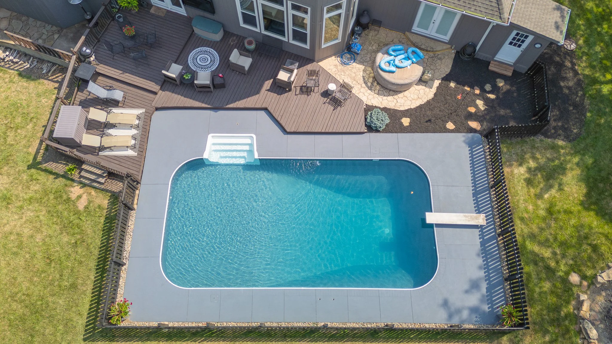 The pool was upgraded 2 years ago. Before this, it was unusable. In the Spring of 2024 we installed a new liner, new electrical, new plumbing, new heater, new salt cell, new gas line from the meter, new robot cleaner, and a new concrete pad for all of the pool equipment. A new fence was also installed to comply with local pool laws. The fence was stained to match the deck.